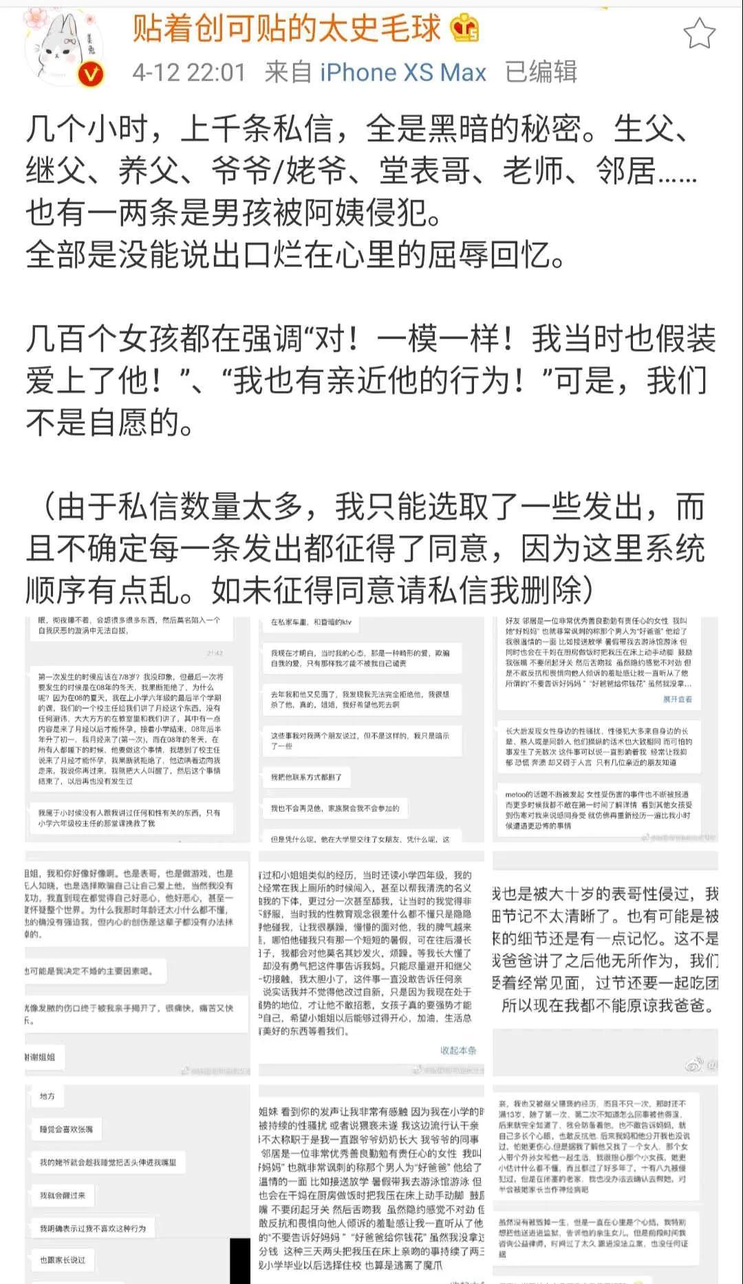 之后几个小时里,她的微博一下涌入上千条私信,全都是讲述自己的感同身受——童年时期被熟人、长辈性侵。