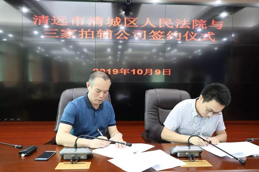 为提高网络司法拍卖工作效率,进一步提升执行工作质效,在原有基础上,从加强监督管理,规范网络司法拍卖辅助工作角度出发,10月9日上午,城区法院正式与清远惠拍网络科技有限公司、江苏京东旭科信息技术有限公司、广东同伦拍拍科技有限公司签署《网络司法拍卖辅助工作外包服务协议》,实现了“法院+网拍平台+拍辅机构”的网络司法拍卖新模式。城区法院党组成员、副院长刘永坚,党组成员、执行局局长潘文飞以及三家拍卖辅助机构的负责人参加了签约仪式。