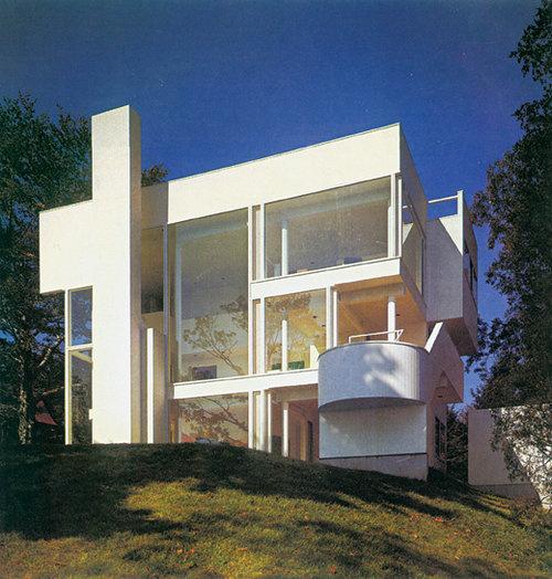 道格拉斯住宅(Douglas House 1971~1973)是白色派作品中较有代表性的一个,其设计者是大名鼎鼎的理查德迈耶。道格拉斯住宅犹如天然的杰作,清新脱俗,一尘不染。室外的楼梯和高耸的烟囱,还有横向的顶,透明的玻璃窗,构成了它的所有。