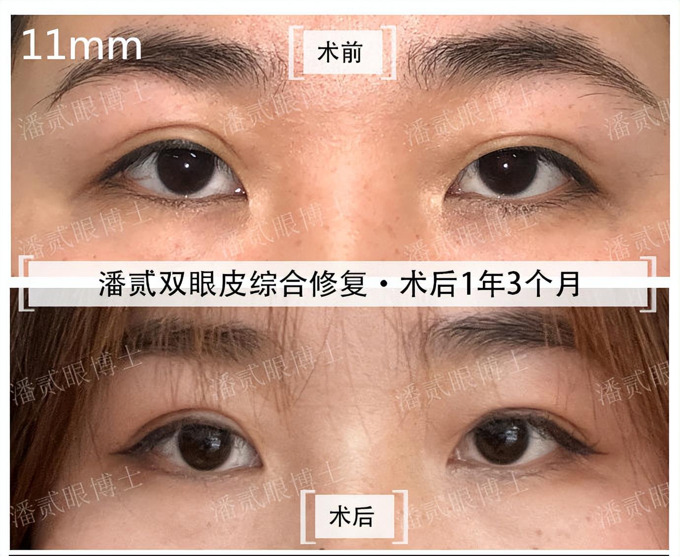 因为宽度和外观有时不成正比!数据宽的双眼皮不一定表现得宽,就像下面这位患者修复前切口高度为11毫米,可外观你觉得算宽吗?很多人看完她术前照片都第一感觉不算宽,竟然有11mm?
