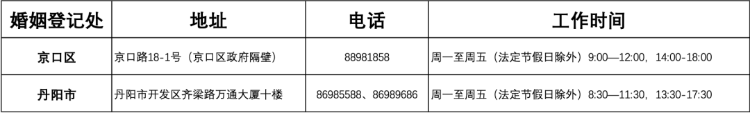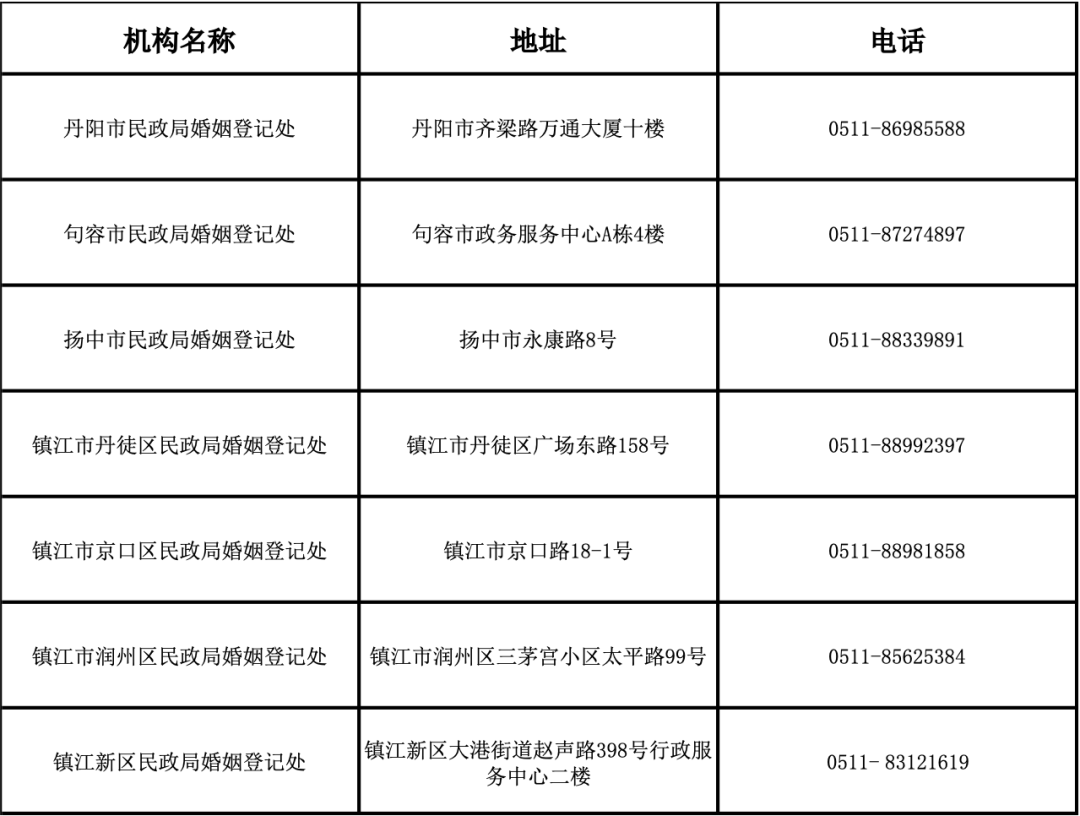 京口区民政局婚姻登记处、丹阳市民政局婚姻登记处