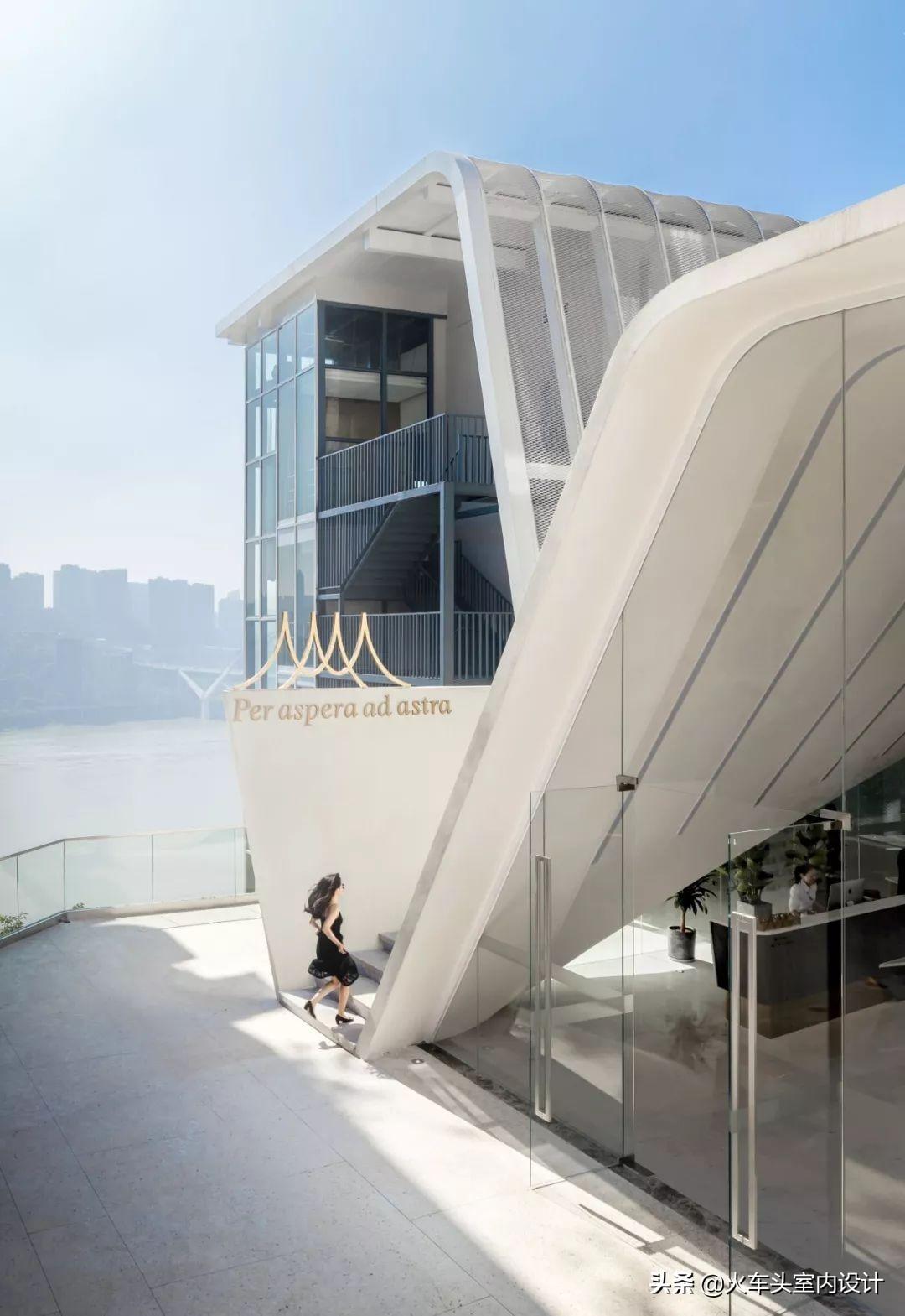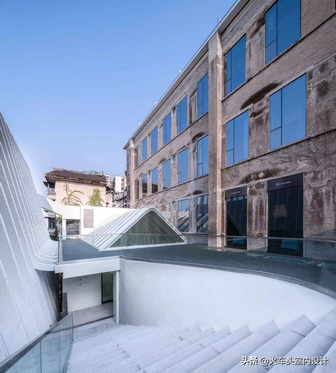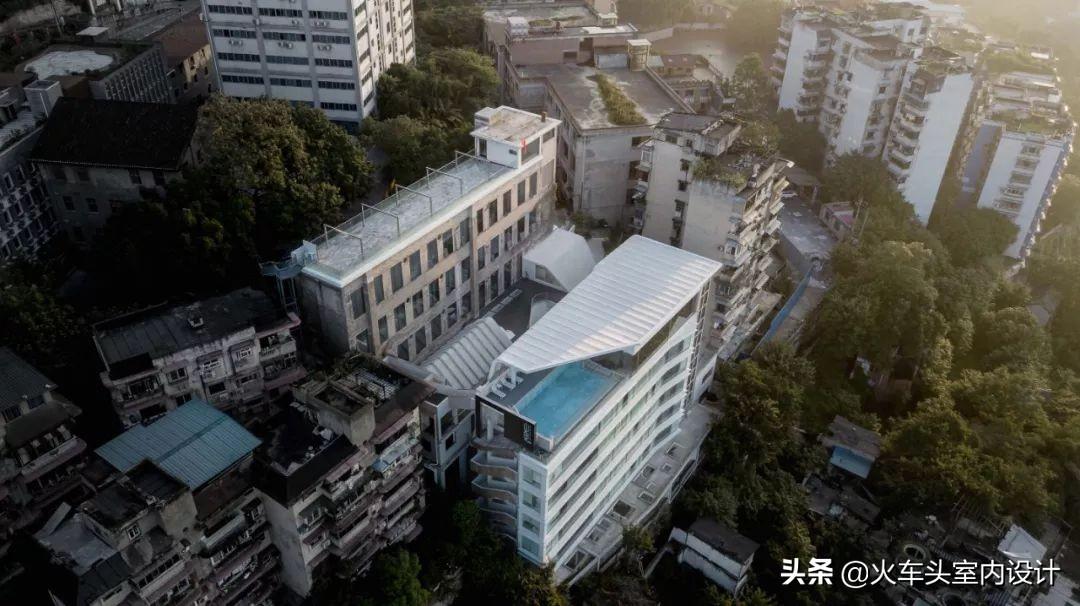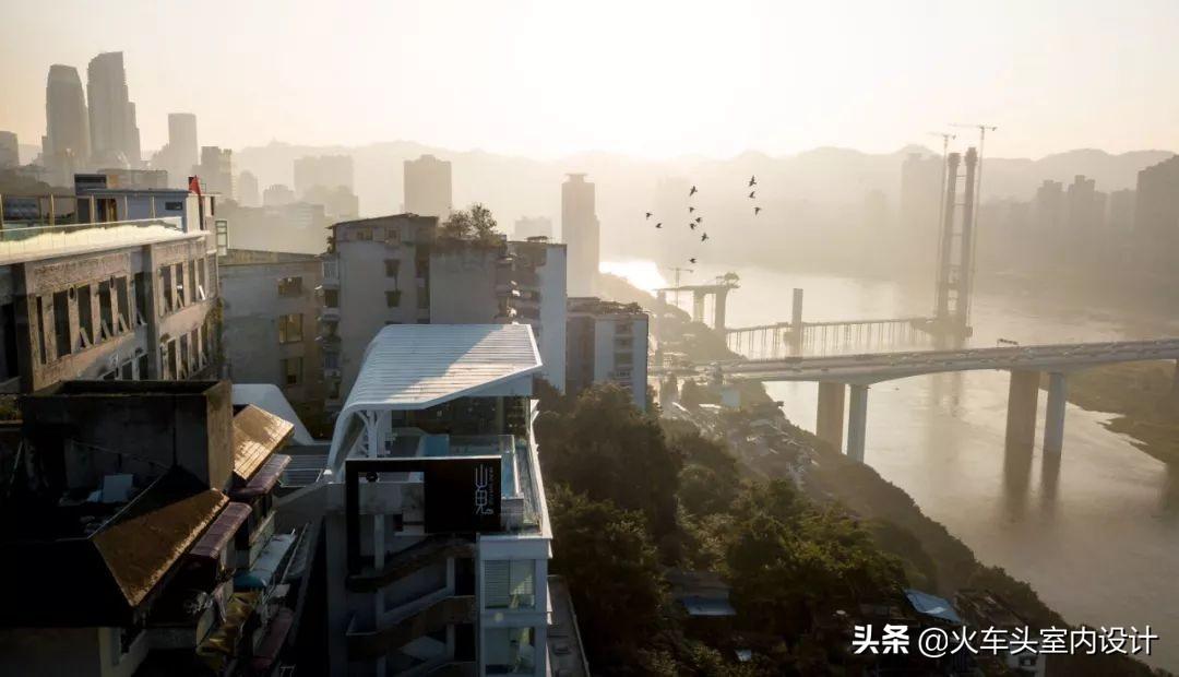 该项目位于重庆市渝中区枇杷山后街影视产业园旧印制一厂,两幢主体建筑顺应地势,一前一后,高低有序地坐落于坡地之上,直面壮美长江,俯瞰两座大桥之间的绿洲,饱览城市天际线。