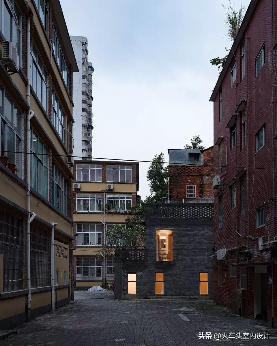 建筑四周围绕着老式居民楼,为了使其呼应周围居住环境的氛围,特意保留了原有立面具有历史质感的青砖。