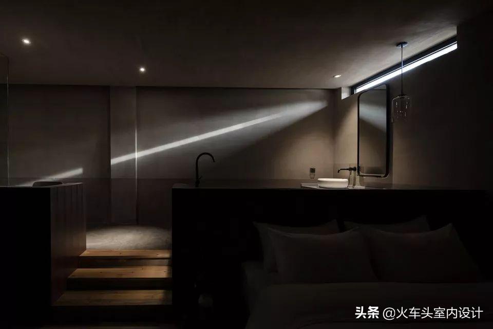 室内空间的设计中充分地考虑了光的作用,光即阴影,当室内极简的装饰和色彩都匿于空间的厚重之中,只有光和阴影在墙壁和地面交响,构筑出光与场所的精神性,激发出人们强烈的情感共鸣。