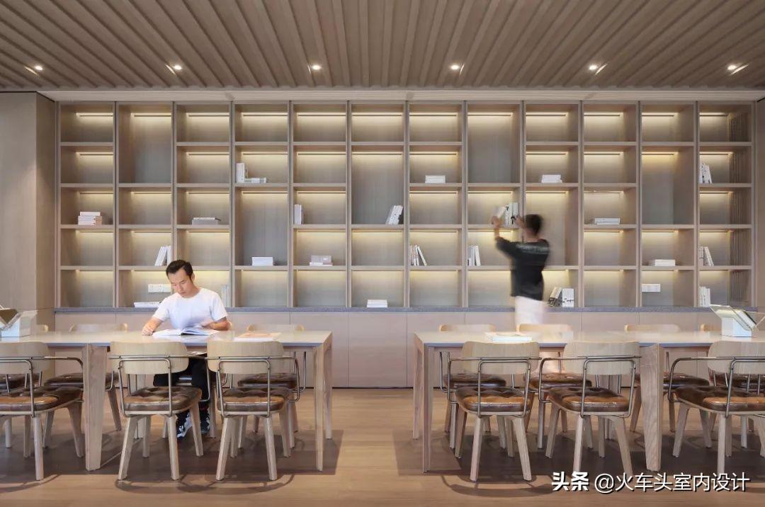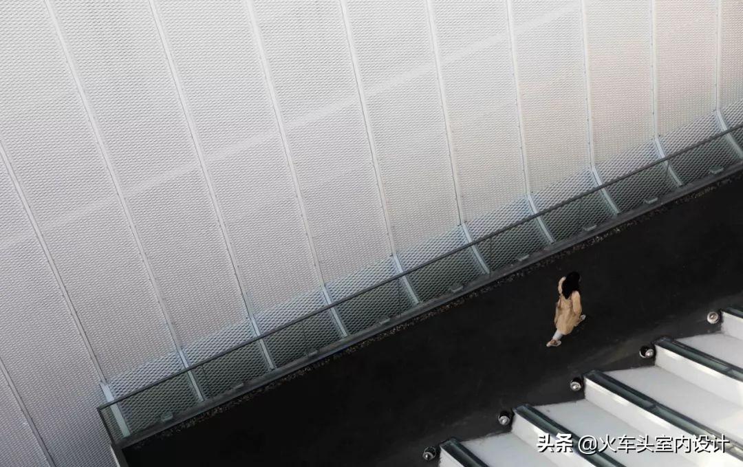 书舍的室内空间,强化建筑、结构所表达的概念“悬挑的屋顶”。