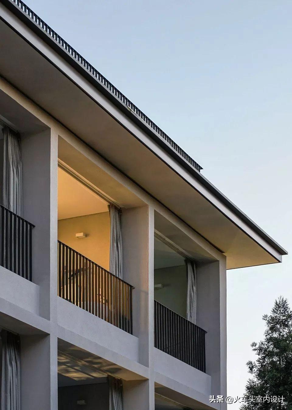 客房单体建筑屋顶选择传统双坡屋顶形制,但采用现代材料和工艺做法进行诠释。