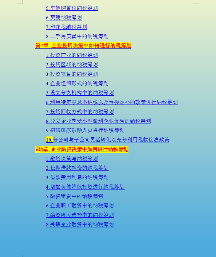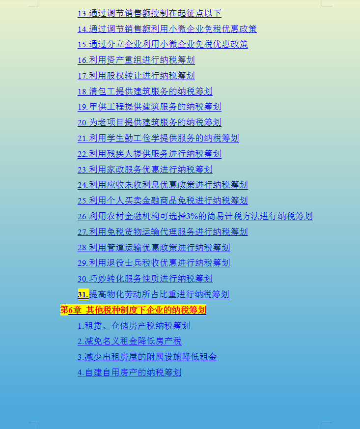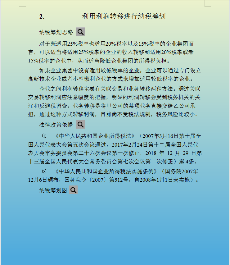 税务筹划,是指在纳税行为发生之前,在不违反法律、法规(税法及其他相关法律、法规)的前提下,通过对纳税主体(法人或自然人)的经营活动或投资行为等涉税事项做出事先安排,以达到少缴税或递延纳税目标的一系列谋划活动。