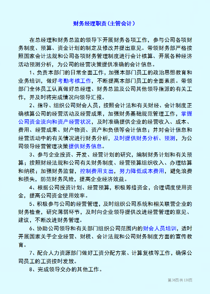 以上就是企业财务部职能职责汇总的部分内容,篇幅有限,有完整版,希望可以帮助到大家!
