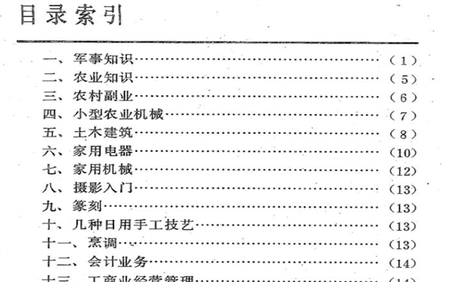 这本书比上面两本书所涵盖的领域都要广,当时主要是为了让从军队上退下来的军人投入到新中国的生产建设中,所以五花八门,各种领域的知识都囊括其中。在这本书中,你既可以学到军事知识,也可能学到农业知识。还有摄影技术,烹调入门。上一秒,你还在学习母猪的产后护理。下一秒,你就会接触到会计的基础入门。