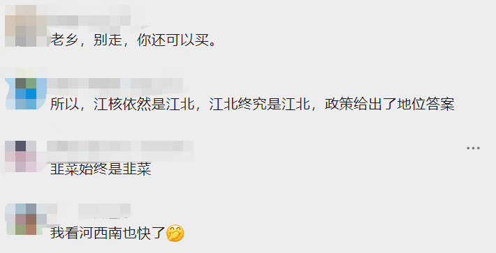 有网友表示还应该放开限售,这个观点小编持保留意见,江核目前新房卖的一般,二手房时不时来俩心态绷不住的“砸盘侠”,放开限售,就江核目前一二手房的体量,市场预期不佳的情况下,很容易形成二手房“抛售潮”,不利于楼市行情的稳定。