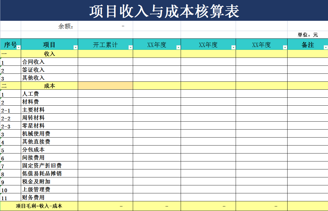 4、项目收入与成本核算表