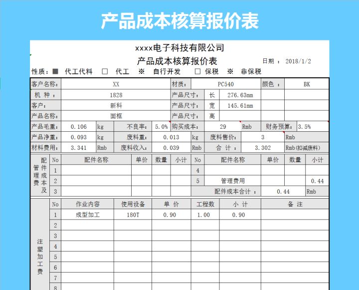 3、产品成本核算报价表