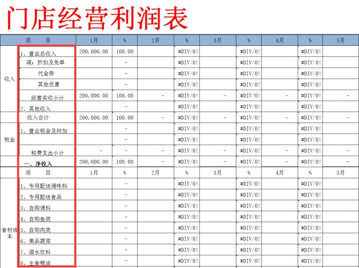 2、门店经营利润表