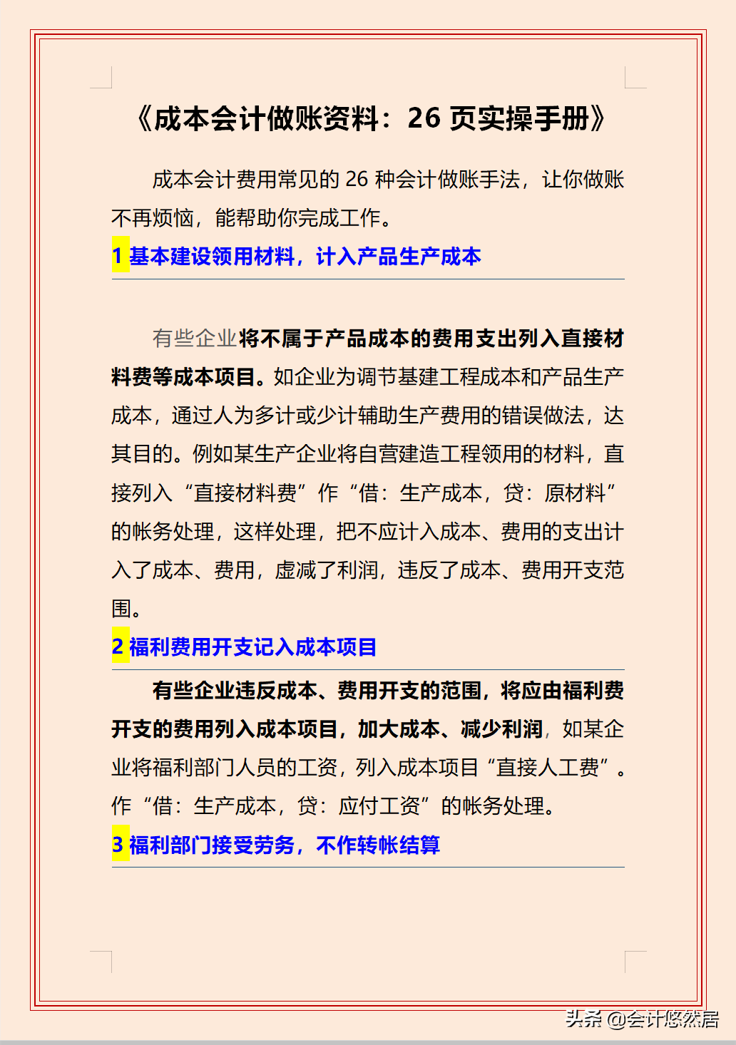 成本会计很难吗?老会计吐血整理26页实操手册和83页成本核算,赞!