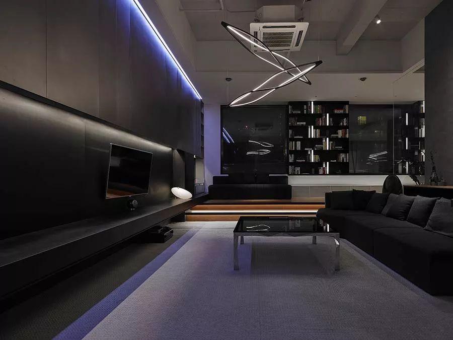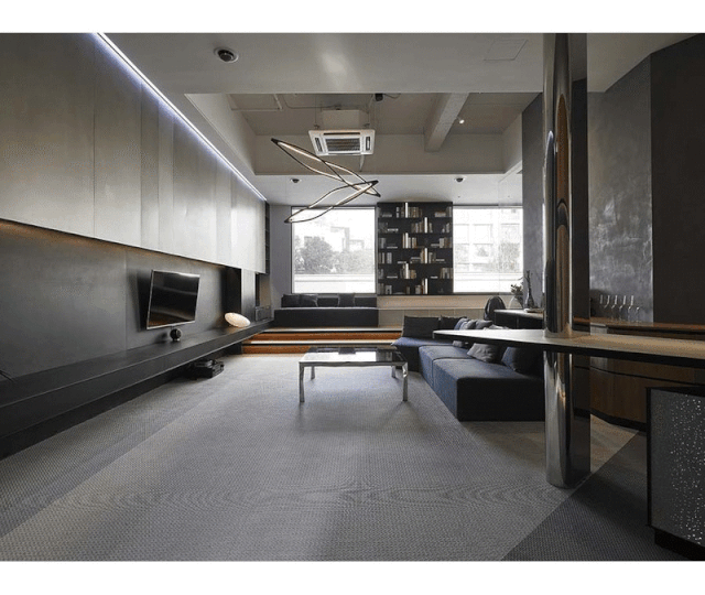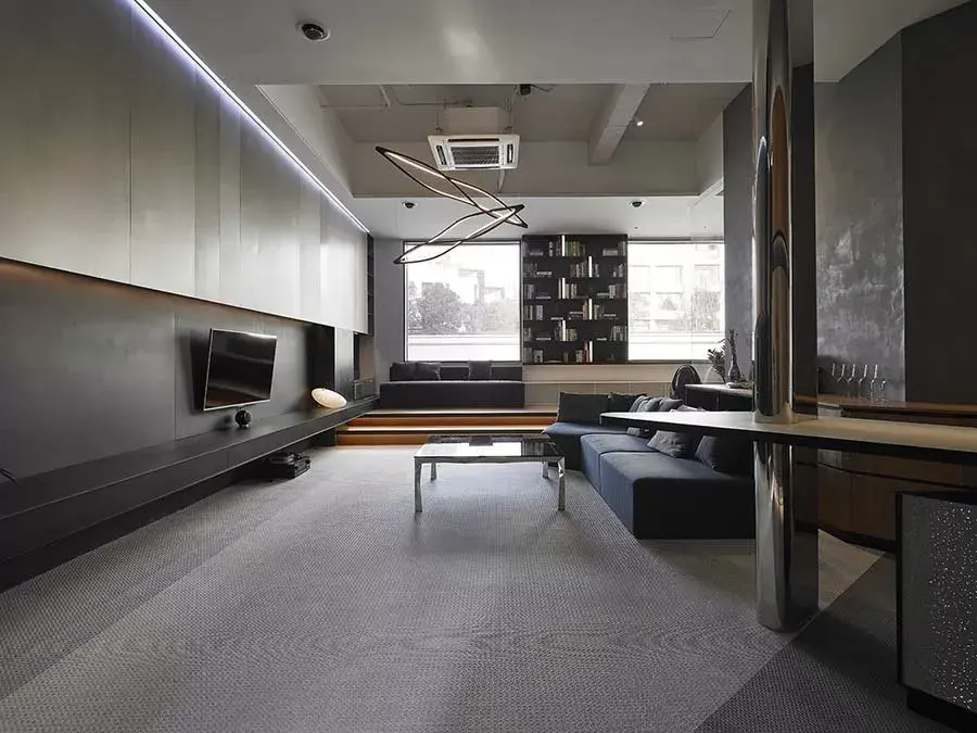另外,针对黑白灰的空间,藉由设置橡木柜平添温润气息,同时提升收纳功能;而重新设计的天花,部分采用裸露设计,一来赋予空间个性,二则拉大高度,营造相对开阔、舒适的环境。