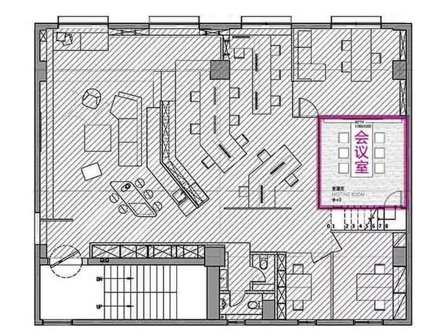 这个案例,属于传统的OA办公空间,原本的布局不仅让整体采光较差,而且轻钢架集成天花也让层高仅剩2.8米,未能体现建筑优势关系,加上原有的消防主干管位置非常尴尬,整体环境的舒适度、功能性都显得不足。