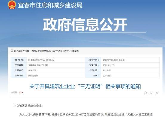 为大力优化提升营商环境,根据单位职能分工,经与市劳动监察局商议,现有建筑业企业“无拖欠农民工工资证明”由市劳动监察局统一负责开具,我局开具的“三无证明”中不再证明“无拖欠农民工工资”。