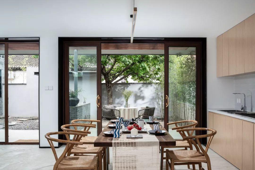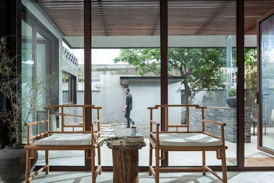 为实现庭院视觉穿透性和连贯性,建筑师以大面积玻璃作为首层南北立面的主要材料,置身室内,可观春华秋实、晨昏雾霭,听雨打石板地的清脆声响,让自然风光成为生活风景。