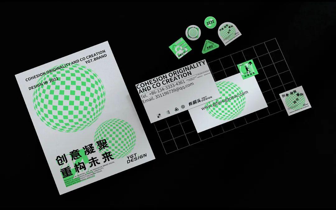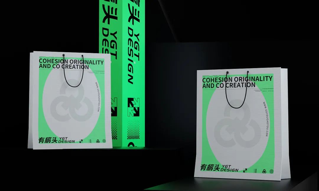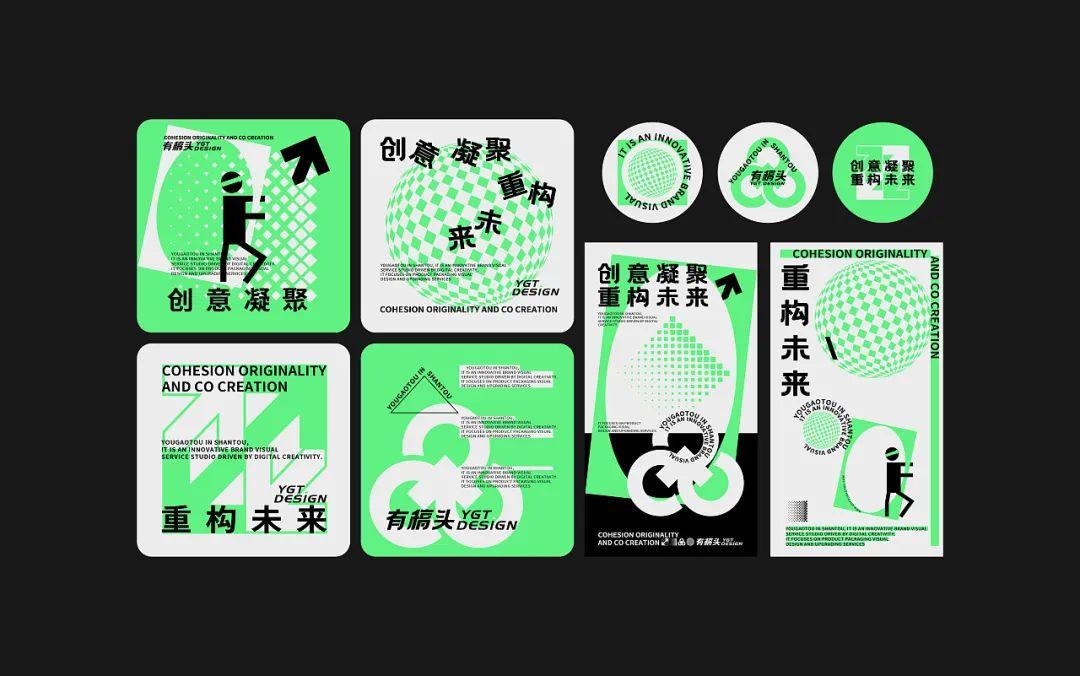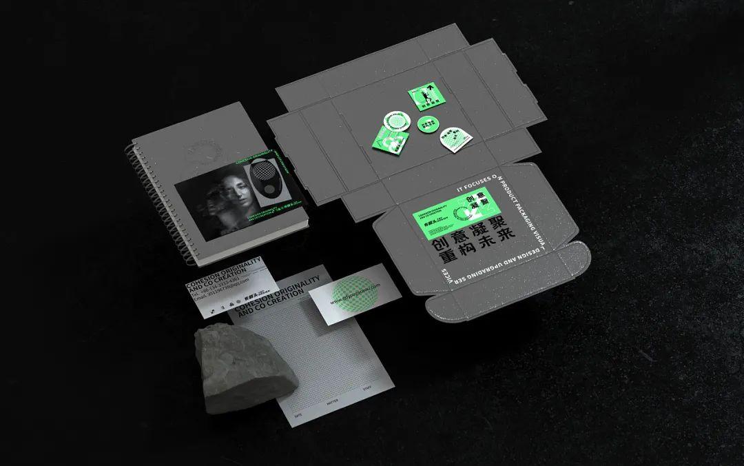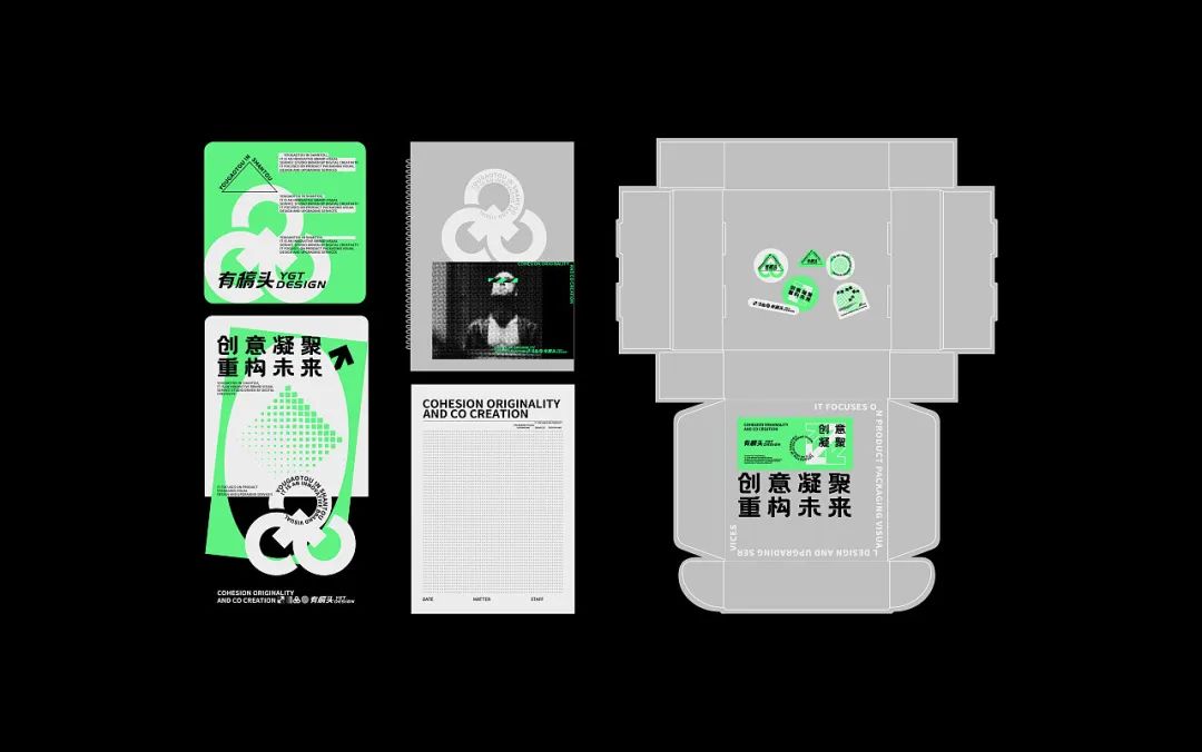 主题色采用了高饱和度的荧光绿色,与黑色LOGO形成高对比度,黑绿配色增添了几分新潮。除了手写字体外,品牌名称字体还采用了经过变化的英文衬线体,丰富了文字应用体系。