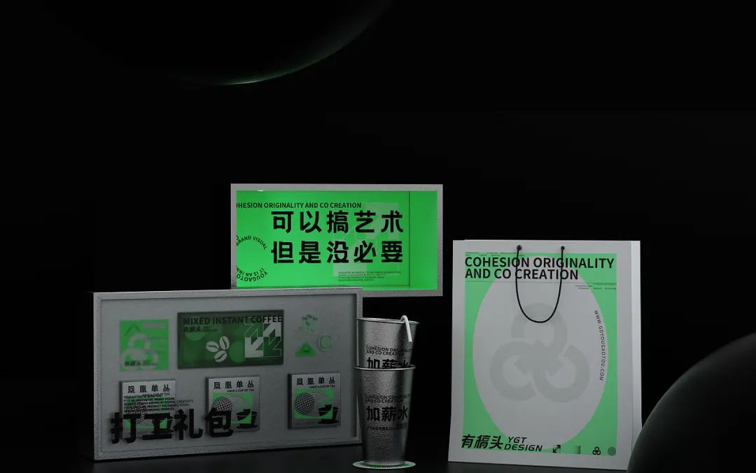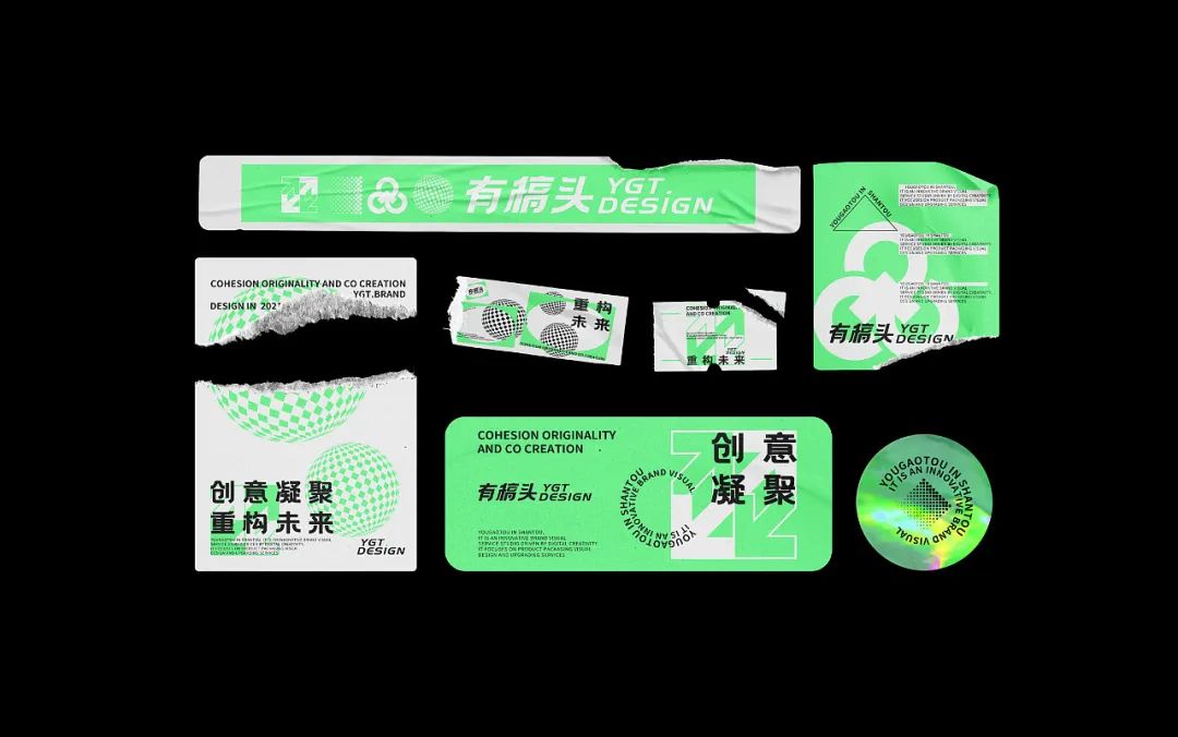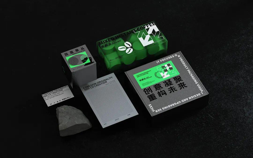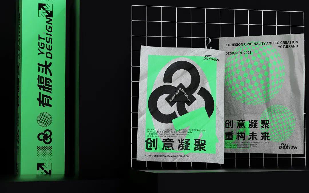 主题色采用了高饱和度的荧光绿色,与黑色LOGO形成高对比度,黑绿配色增添了几分新潮。除了手写字体外,品牌名称字体还采用了经过变化的英文衬线体,丰富了文字应用体系。