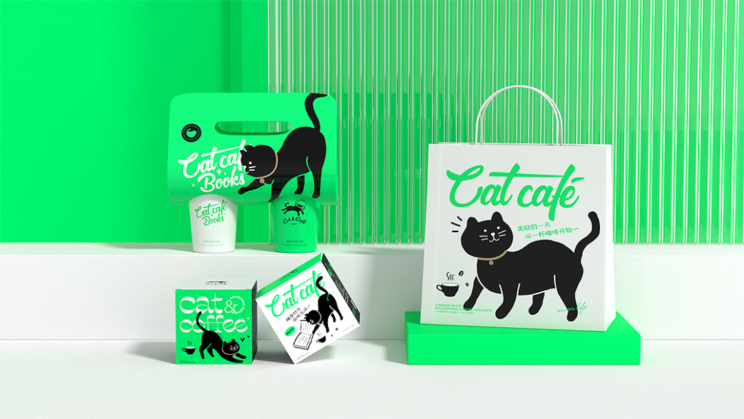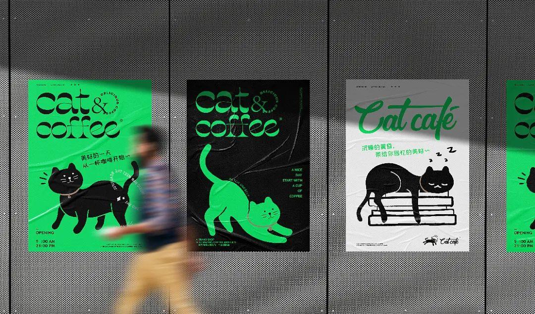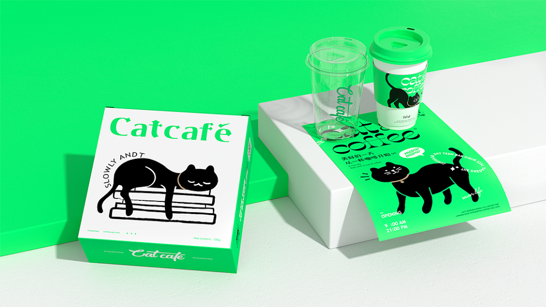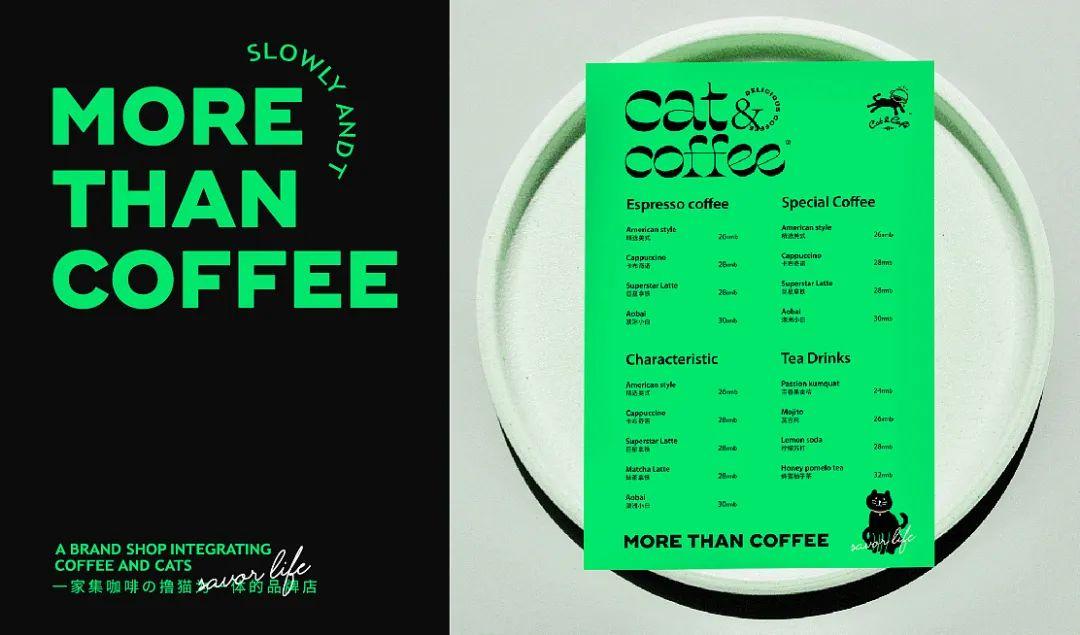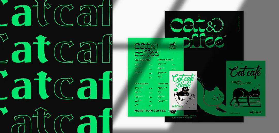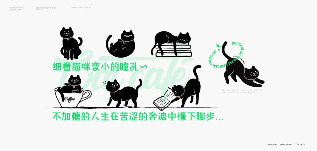 餐饮视觉研究室:《黑绿配色的猫咖品牌设计,从视觉上就带来治愈心情!》