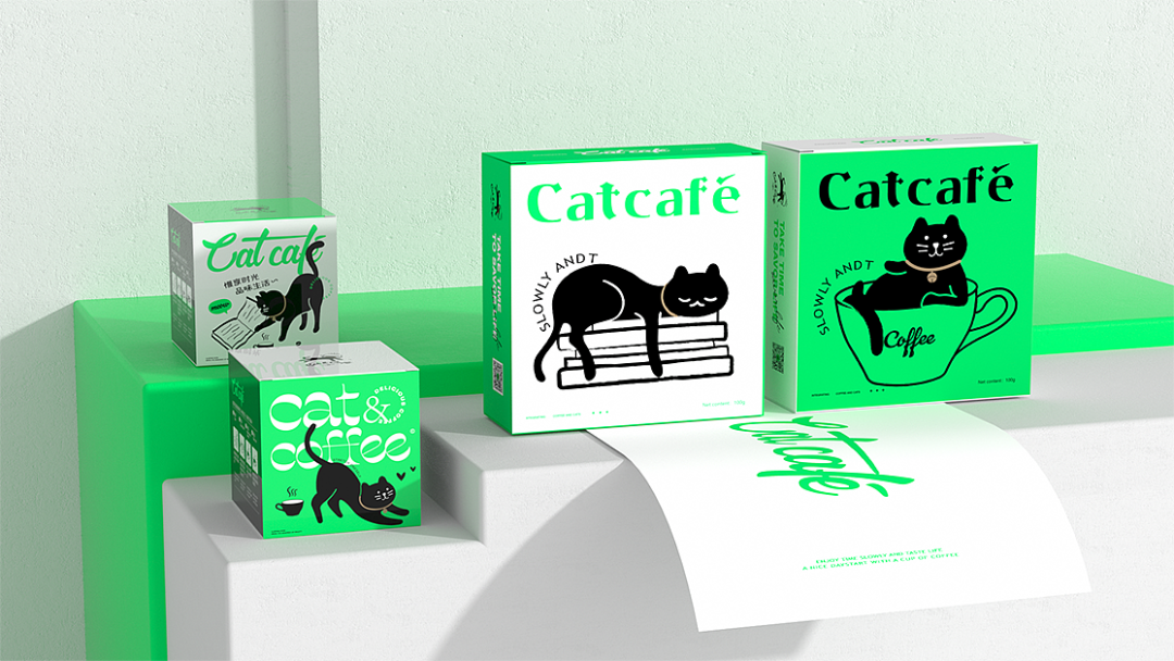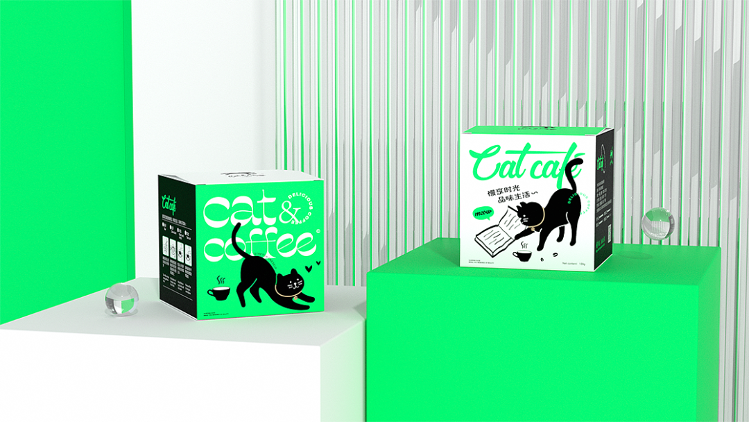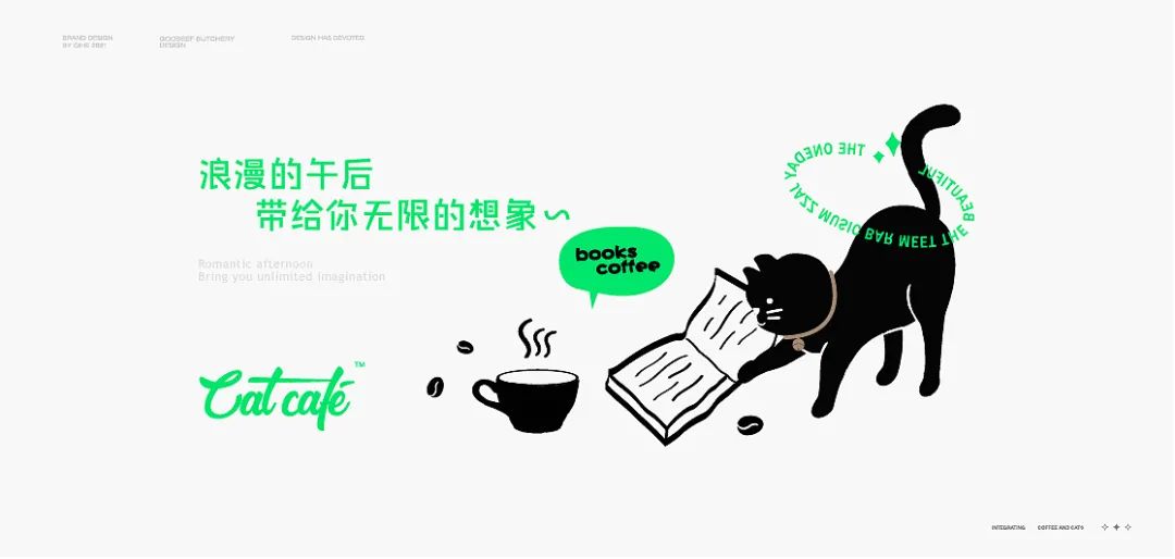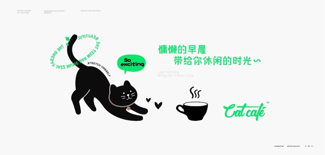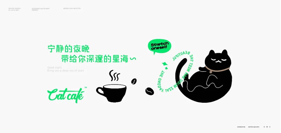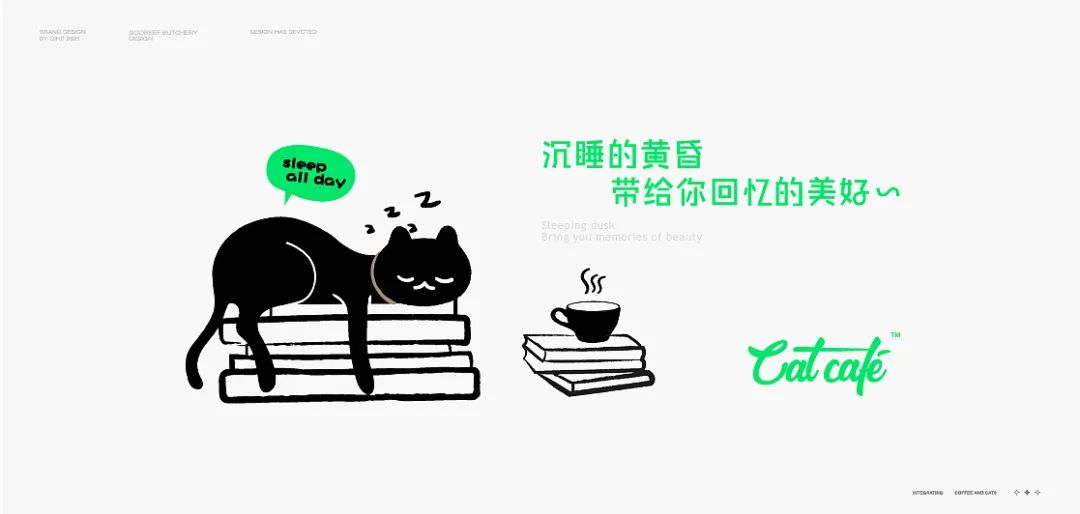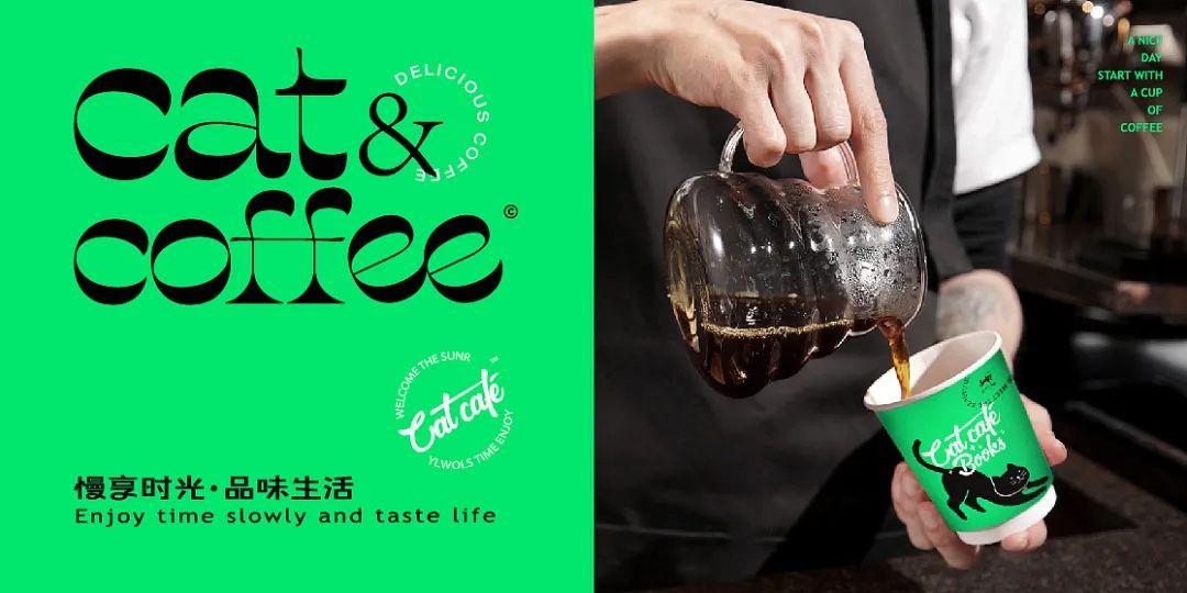 餐饮视觉研究室:《黑绿配色的猫咖品牌设计,从视觉上就带来治愈心情!》