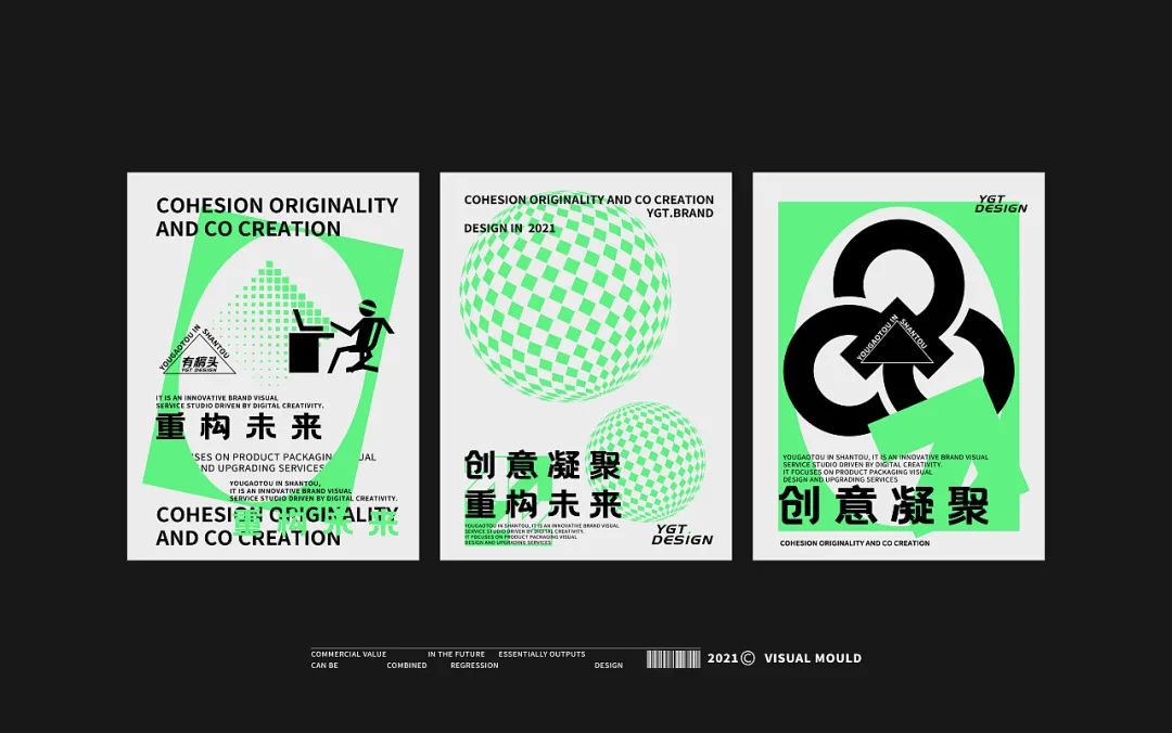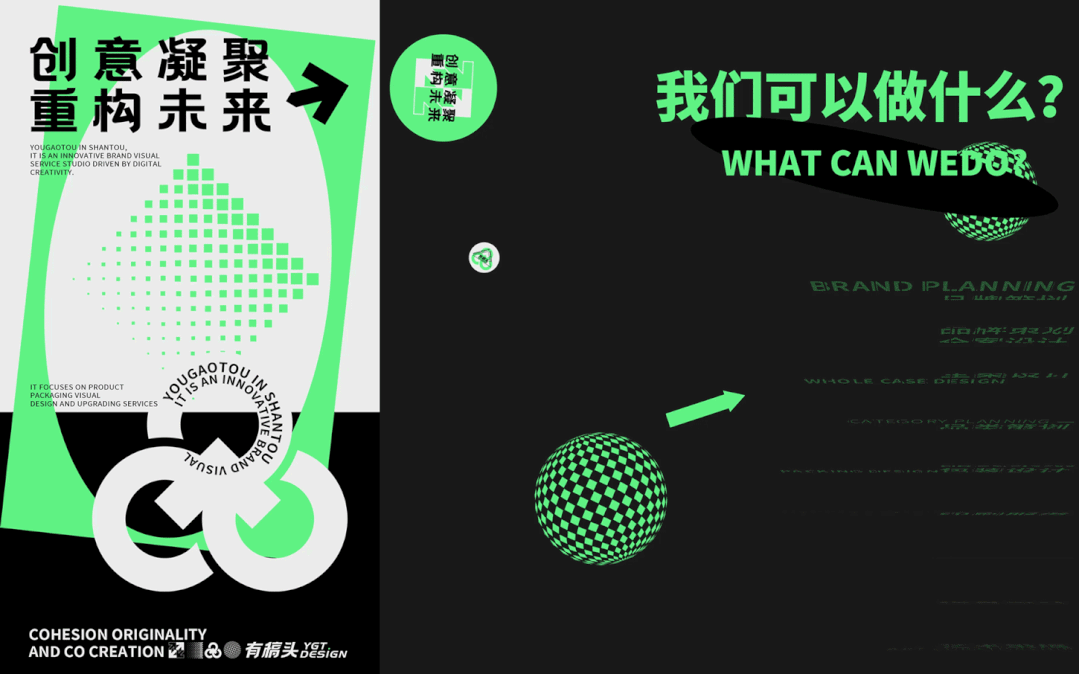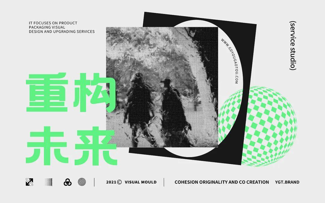 以“重构未来”为主题,青翠色与黑色结合,给人以未来科技感。