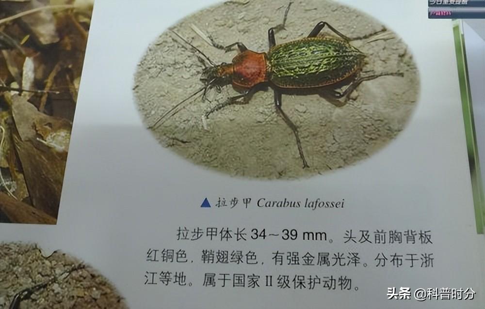 原来,小王捕捉的那个绿光虫子名叫拉步甲,是国家二级保护动物。而其余几个“金龟”中,也有一个名为“阳彩臂金龟”的二级保护动物。