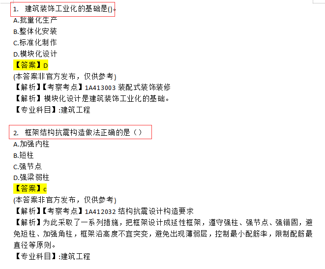 对答案!2021一建《专业实务》全科真题及答案已出(完整版)