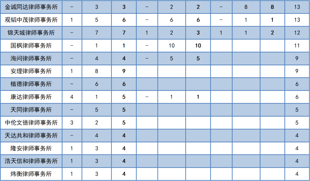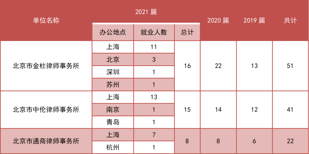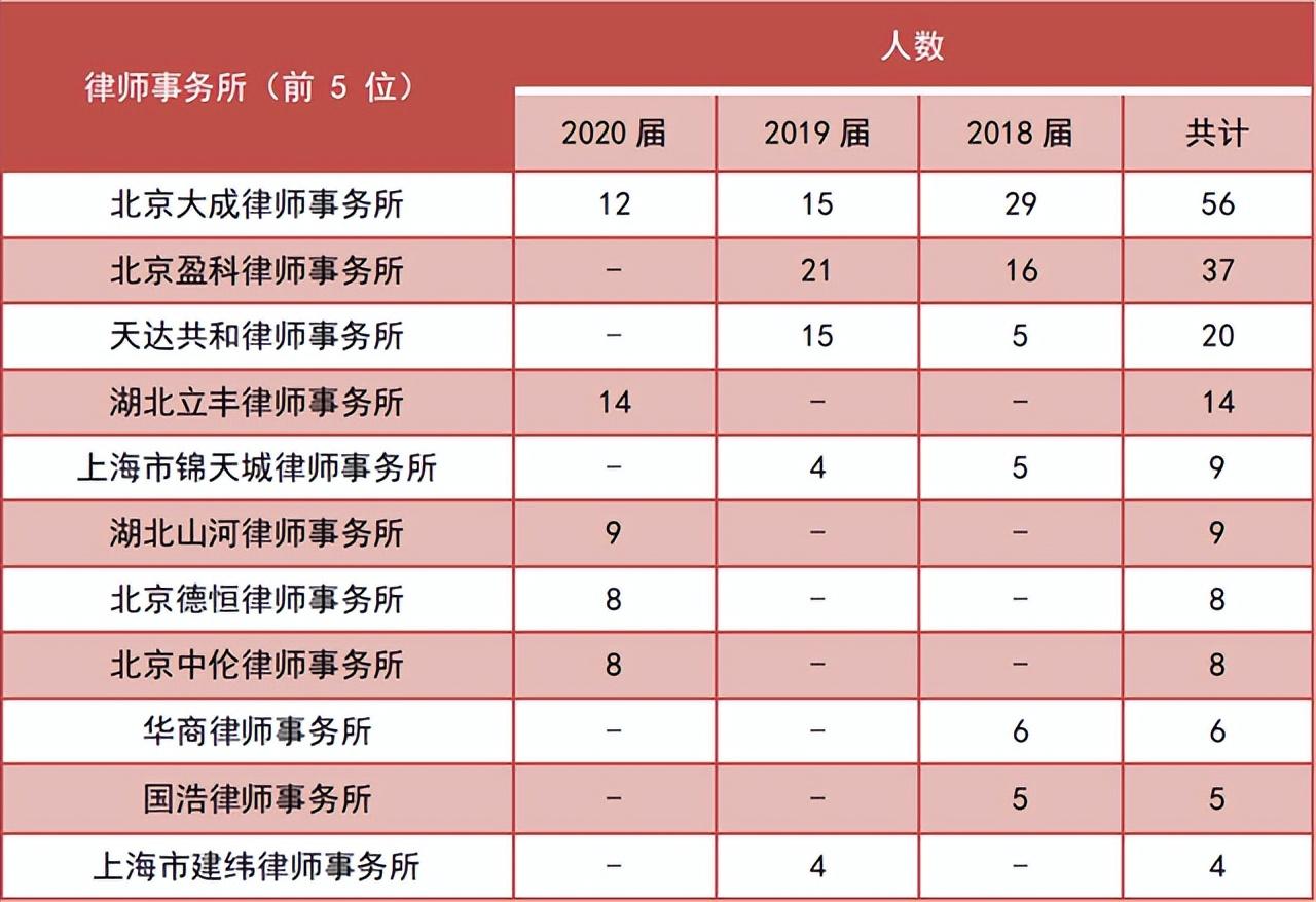 近三届中国政法大学应届毕业生就职律所分布表