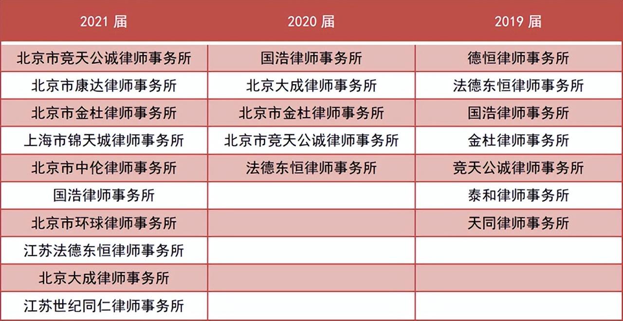 近三届南京大学法学院毕业生重点入职单位中的律所名单
