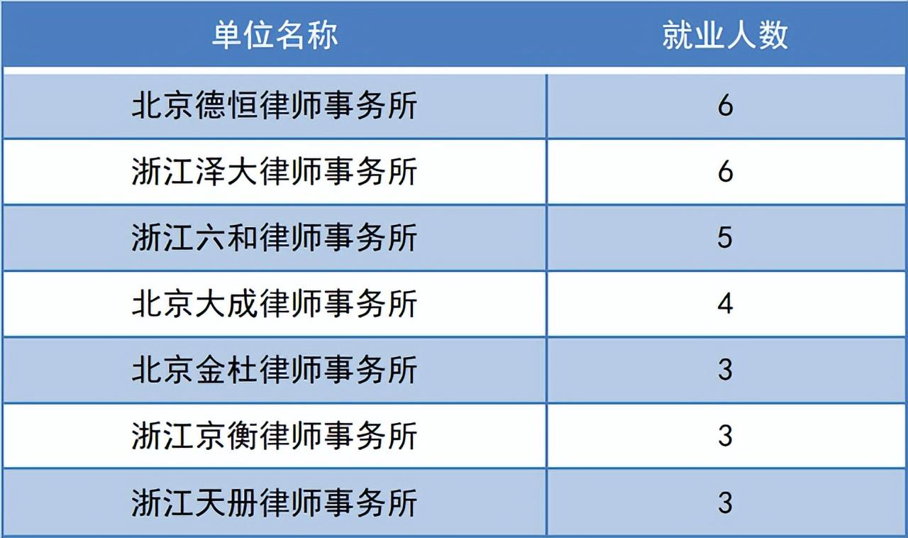 2019届浙江大学法学院毕业生就职律所分布