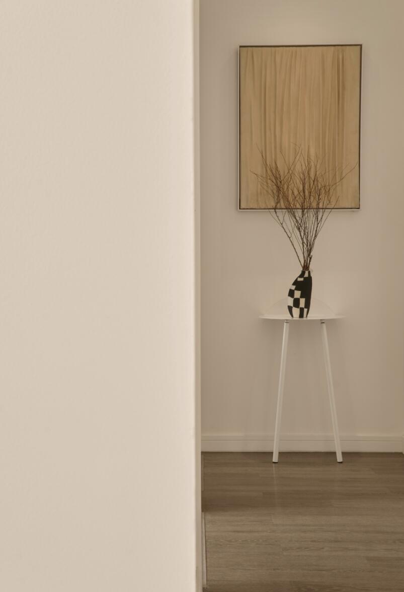 过道端景墙,直接用端景台来装饰,再通过装饰画、植物点缀,不仅在视觉上做到了简约、干净,也间接性丰富了空间。
