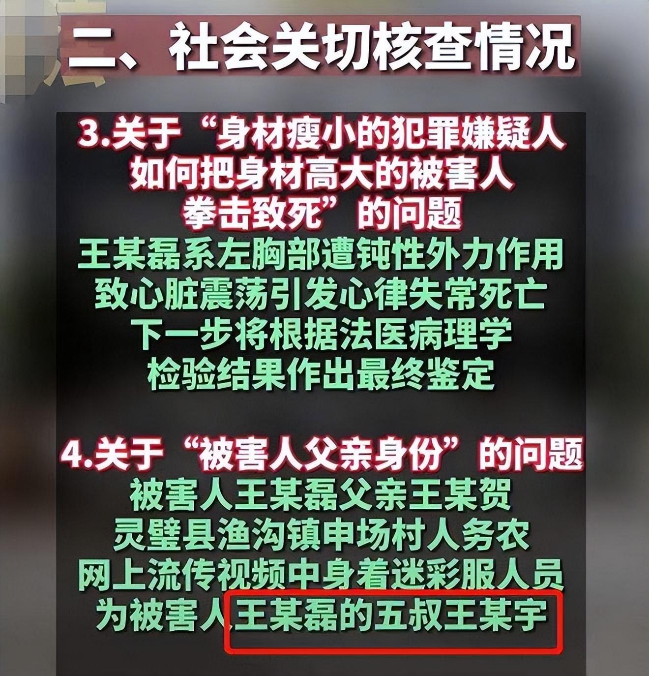 警方也调查得知了王守贺夫妇二人身份均为普通农民,在网络上让网友们讨论得沸沸扬扬的一位身穿迷彩服为王某磊讨回公道的视频。
