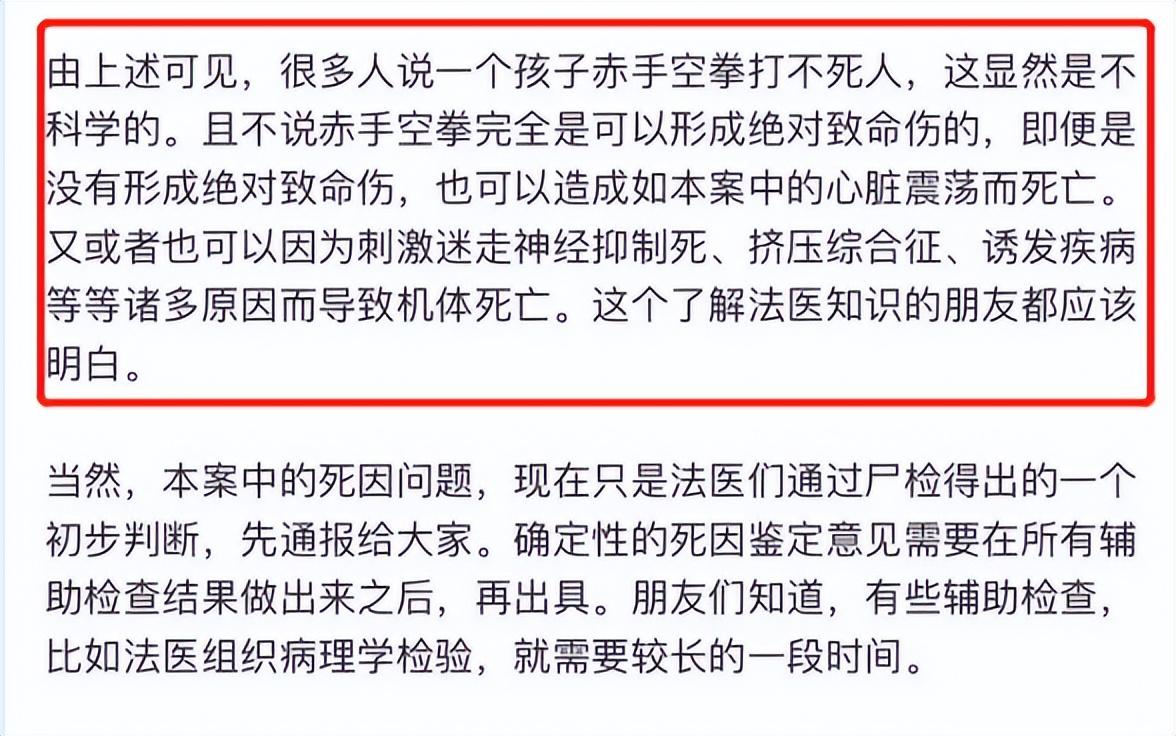 法医秦明也对于网友们对“一名14岁孩子能一拳打死一个人的质疑”,也做出了最合理的解释。