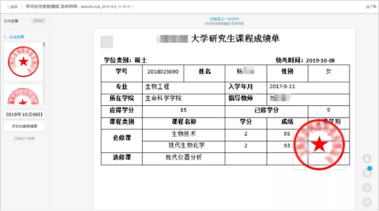 痛点:成绩单是高校内最普遍的用印文件,每个学期都有大批量的签署需求,而且操作往往比较机械化,人工操作占用大量时间。