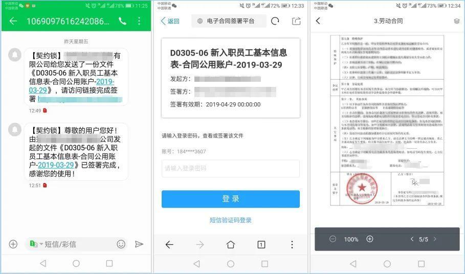 ② 系统自动以短信方式提醒毕业生、实习单位签字、盖章,双方登录验证身份后,几分钟就能完成。