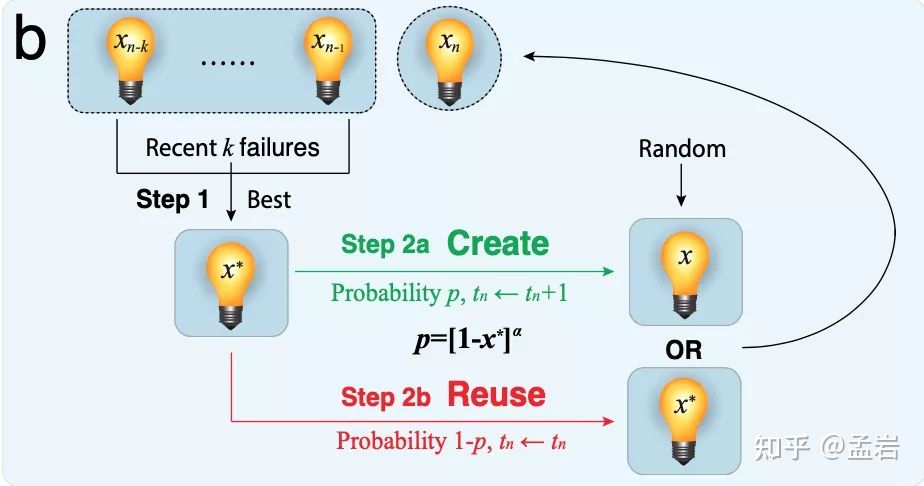 2)重用前 k 次尝试中的最佳版本(概率为 1 - P)。