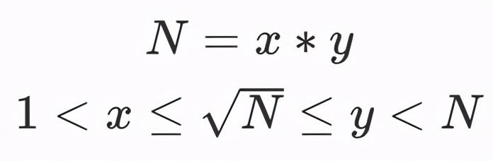 常见的判定质数的方式是「试除法」,假设自然数 N 不是质数,则一定存在一对数