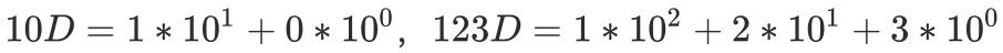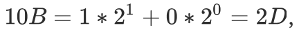我们以 B、D 来分别标记二进制与十进制,例如 10D 表示十进制中的 10,而 10B 则表示二进制中的 10。