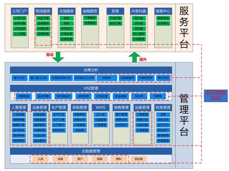 我公司十分重视信息化平台的建设,在硬件和软件上投入了超过500万资金,2016年成立了智慧物流技术研发室,专门负责企业信息化建设工作。硬件方面,公司所有营运车辆都安装北斗卫星定位系统装置,其中217辆危化车全部安装了4G视频车辆主动安全预警系统,在运营的5艘海运船也全部安装了视频监控系统。建设监控中心对公司所有车辆和船舶实行24小时动态监管,如果发现车辆超速、超时、司机接打手机、疲劳驾驶等违规情况,及时通过语音播报提醒司押人员,如果发现船员不戴安全帽、不穿救生衣上甲板等违规行为,及时通知船长纠正违规作业。软件方面,企业从2008年开始先后开发了物流管理信息系统、安全生产网格化管理APP、人力资源管理信息系统、石化物流安全生产网格化管理平台、财务结算管理信息系统等软件。随着企业的不断发展,各系统之间“信息孤岛”的问题日益突出,为此企业2018年开始自主研发能化链平台,分为数据平台、管理平台、服务平台3个子平台,融合ERP(企业资源计划)、OA(办公自动化)、Workflow(工作流)、TMS(运输管理系统)、WMS(仓储管理系统)等系统功能,实现集中、集成、高效、智慧的全面信息化管理目标。
