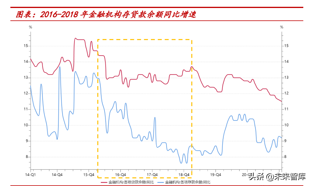 2016 年推出 MPA 宏观审慎评估体系,银行宏观审慎资本充足率约束其 广义信贷增速;另金融去杠杆背景下,信贷派生渠道受限、行业整体存 款揽储压力非常大,在资本和存款约束下,银行总体信贷规模增速不高。 2016-2018 年金融机构贷款同比增速稳在 13%左右;存款增速在这几年 间呈现下滑趋势。