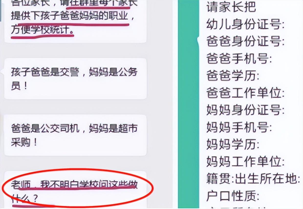 比如有些学校要求家长填写学生家庭住宅面积、房价和产权信息,甚至还要登记家长的身份证号,就未免有些侵犯隐私了。