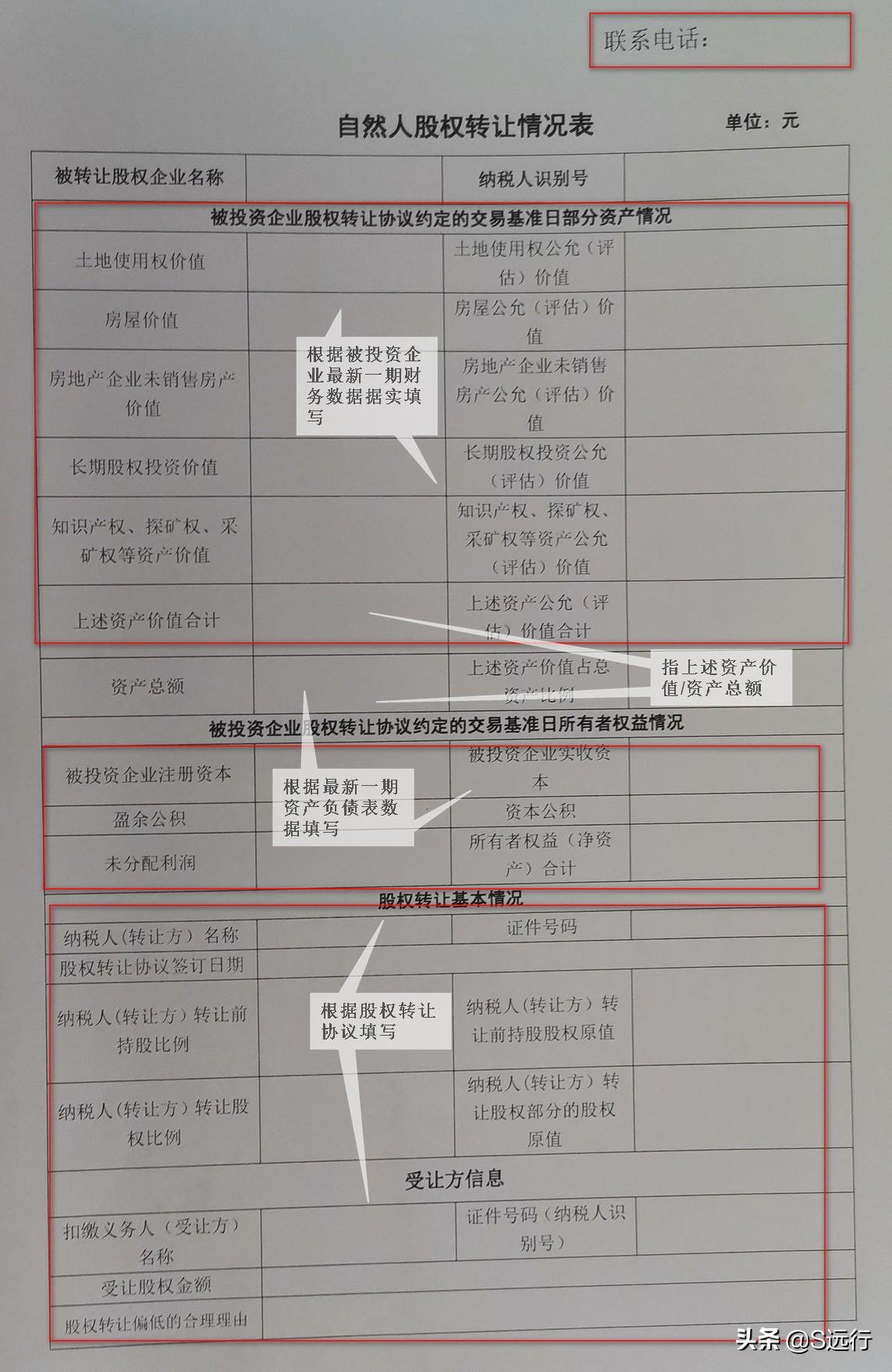 1、自然人股权转让情况表(窗口领取)表头写上联系电话。