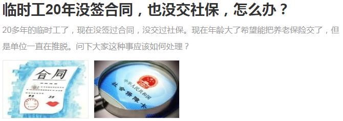 版权声明:我们致力于保护作者版权,注重分享,被刊用文章【临时工没签合同怎么办(临时工20年没签合同)】因无法核实真实出处,未能及时与作者取得联系,或有版权异议的,请联系管理员,我们会立即处理! 部分文章是来自自研大数据AI进行生成,内容摘自(百度百科,百度知道,头条百科,中国民法典,刑法,牛津词典,新华词典,汉语词典,国家院校,科普平台)等数据,内容仅供学习参考,不准确地方联系删除处理!;