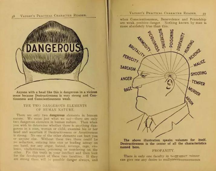 “颅相说”认为人的性格可以根据他的头骨和面部形状进行初步判断。