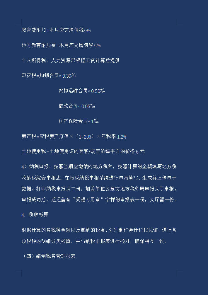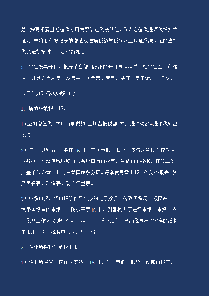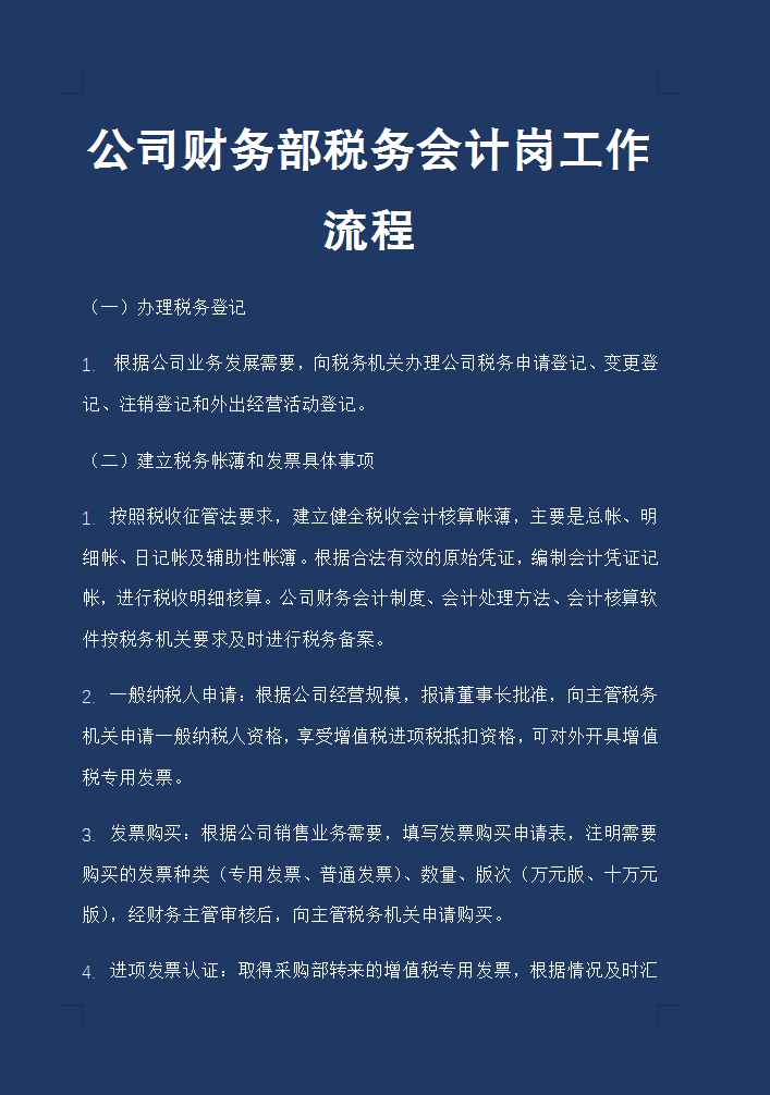 今天我就和大家分享一点我做税务会计积攒的经验:税务会计的工作流程,希望对大家有所帮助。(文末可抱走)