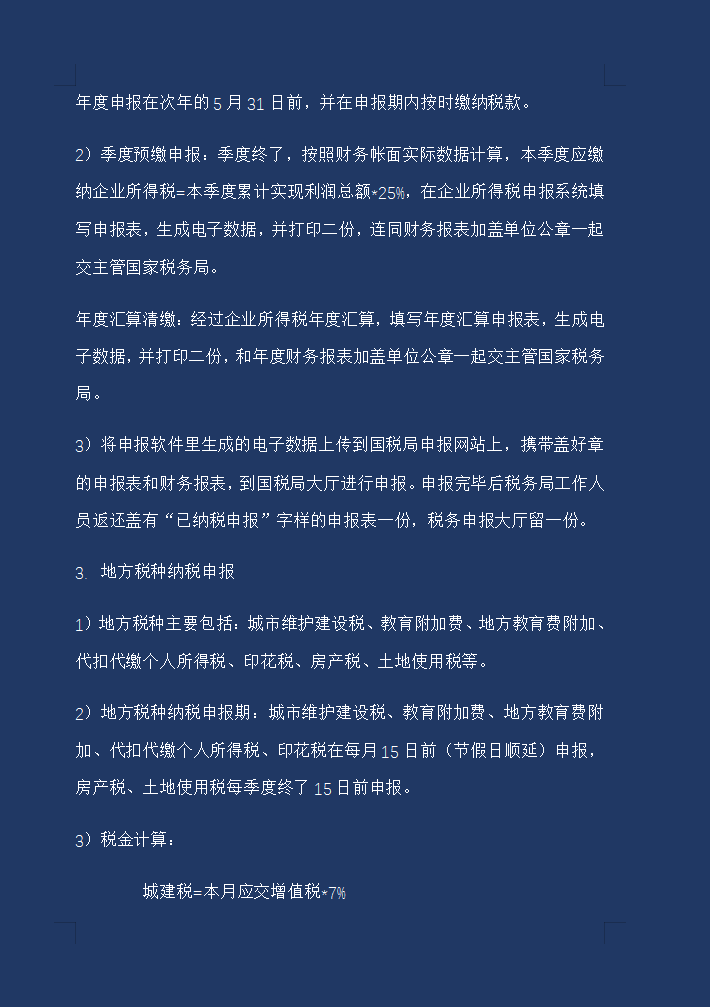 增值税的纳税申报、企业所得税的纳税申报、地方税的纳税申报