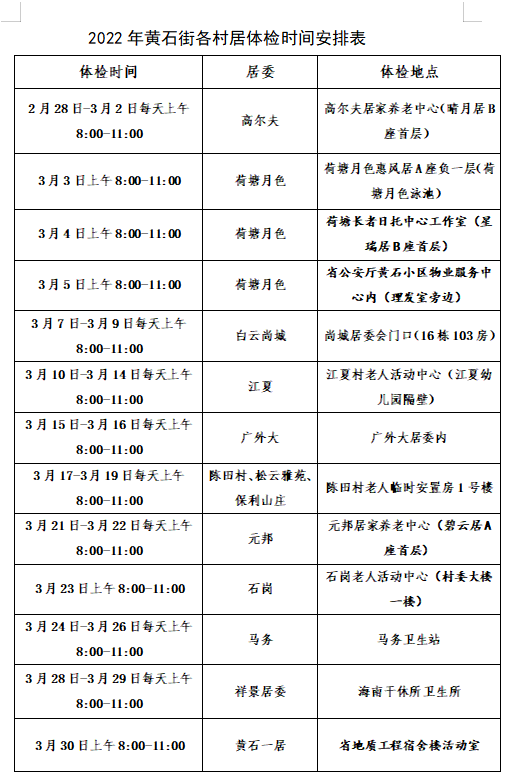 错过以上体检时间,可自行前往石井街社区卫生服务中心体检。