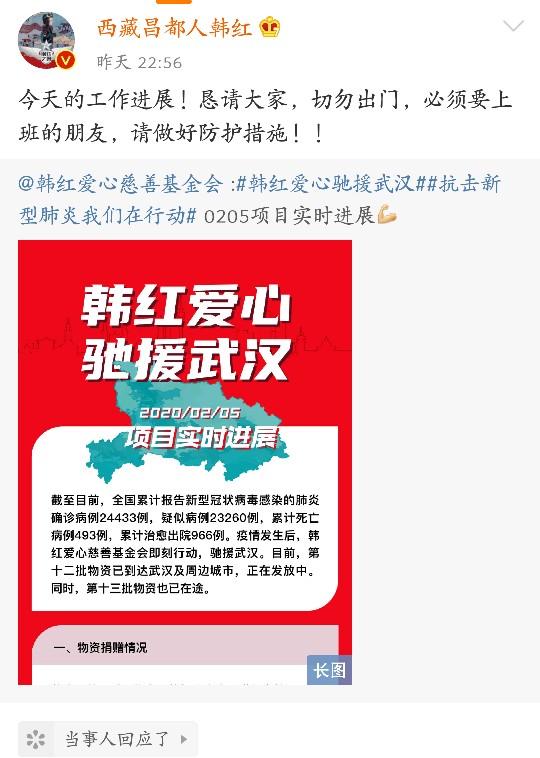 相信大家都知道最近韩红被多位大v曝出韩红基金会的黑料。就在昨天晚上,韩红第一时间发出微博。
